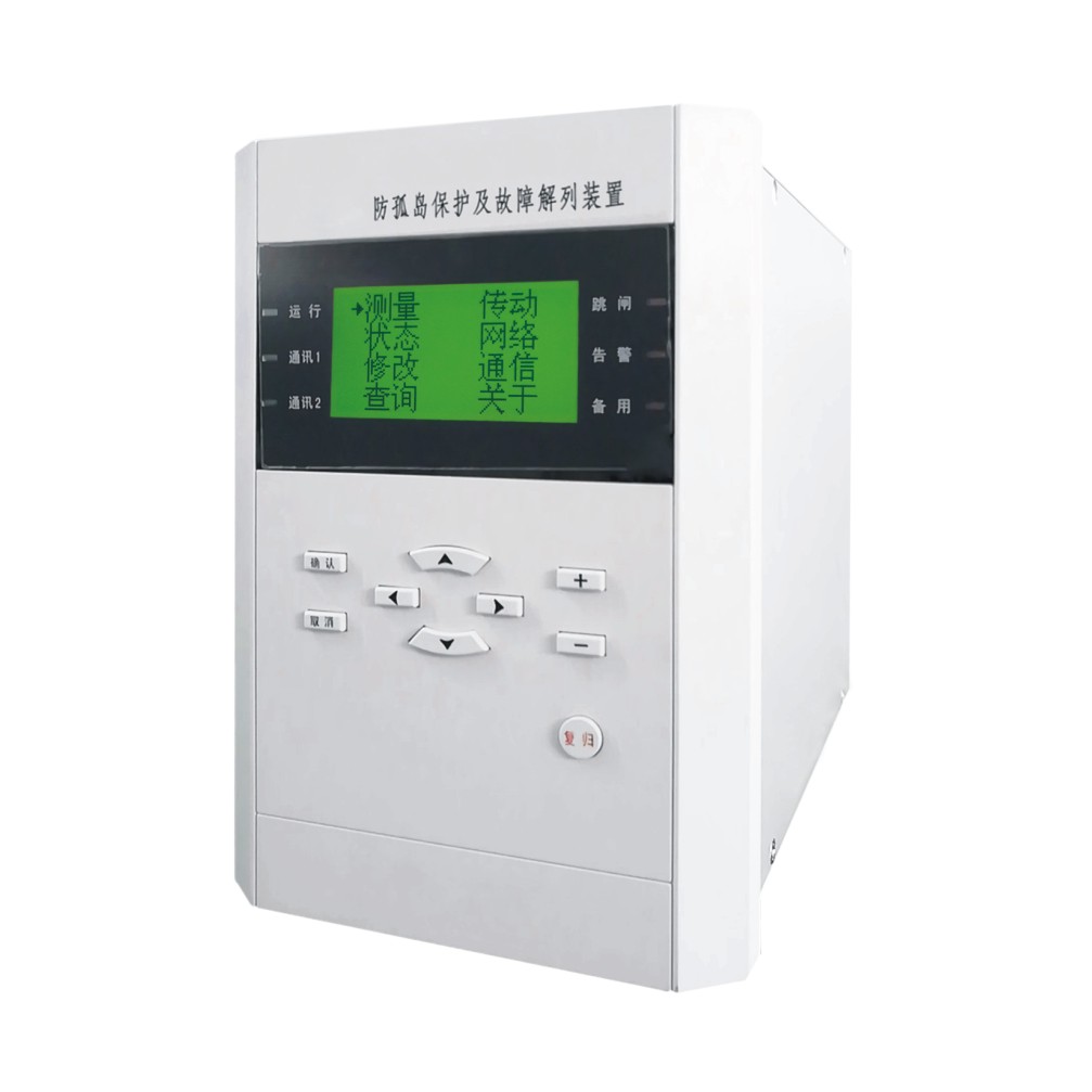 KZG- 6300( D)防孤岛保护及故障解列装置适用于110kV以下电压等级的负荷侧或小电源侧的故障解列装置,可组屏安装, 也可以在开关柜上就地安装。故障解列装置不同于因系统有功、无功缺额而设置的低频低压减载(解列)装置,两者不能等同混 用。当使用该装置的低压解列功能时,要特别注意PT断线的判别逻辑。